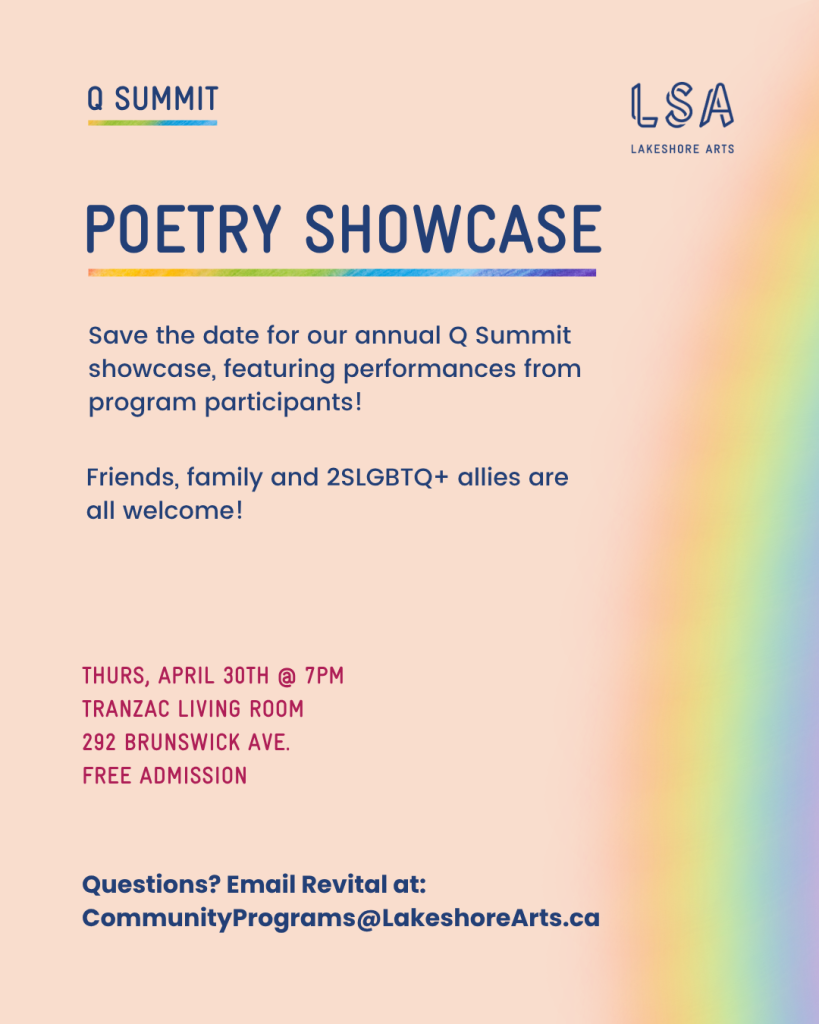 Questions? Email our Programs Coordinator, Steffi Ng, at ProgramsCoordinator@LakeshoreArts.ca